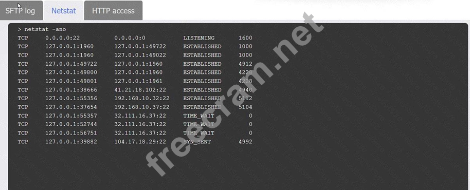 * IP 41.21.18.102 has an ESTABLISHED connection with port 22, commonly used for SFTP.