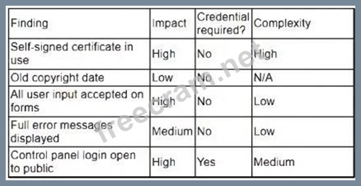 A security analyst obtained the following table of results from a recent vulnerability assessment that was conducted against a single web server in the environment: Which of the following should be completed first to remediate the findings?