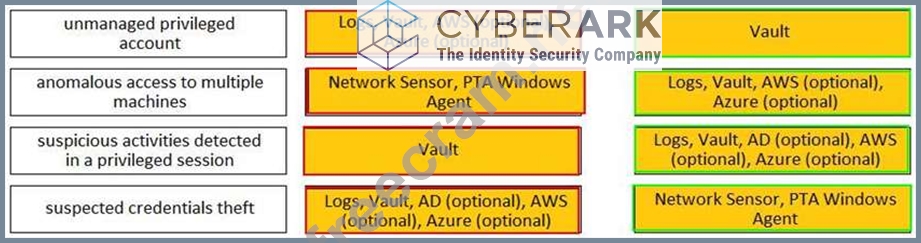 Question 68: Match each PTA alert category with the PTA sensors that coll...