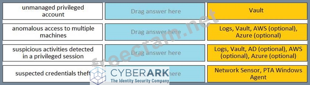 Question 6: DRAG DROP Match each PTA alert category with the PTA sensors...