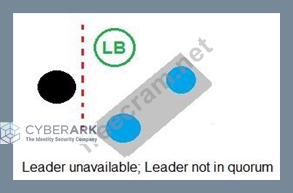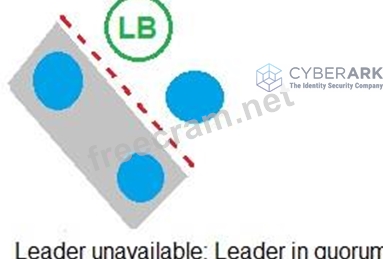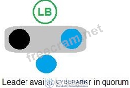 According to the CyberArk Sentry Secrets Manager documentation, auto-failover is a feature that enables the automatic promotion of a standby node to a leader node in case of a leader failure. Auto-failover requires a quorum, which is a majority of nodes in the cluster that are available and synchronized. A quorum ensures that only one node can be promoted to a leader at a time and prevents split-brain scenarios. In the exhibit, each option shows a network diagram of a load balancer and four nodes, one of which is crossed out with a red X, indicating a leader failure. The text below each diagram indicates whether there is a quorum or not. Option C is the only example where auto-failover will occur, because there is a quorum of three out of four nodes, and one of the standby nodes can be promoted to a leader. Option A will not have auto-failover, because there is no quorum, as only two out of four nodes are available. Option B will not have auto-failover, because there is no quorum, as only one out of four nodes is available. Option D will not have auto-failover, because there is no quorum, as none of the nodes are available. References: 1: Auto-failover 2: Configure auto-failover