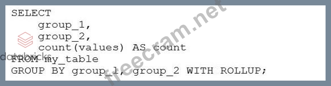 The correct answer is Option B, which uses WITH ROLLUP to generate the subtotals for each level of grouping as well as a grand total. This matches the result set where we have subtotals for each group_1, each combination of group_1 and group_2, and the grand total where both group_1 and group_2 are NULL.