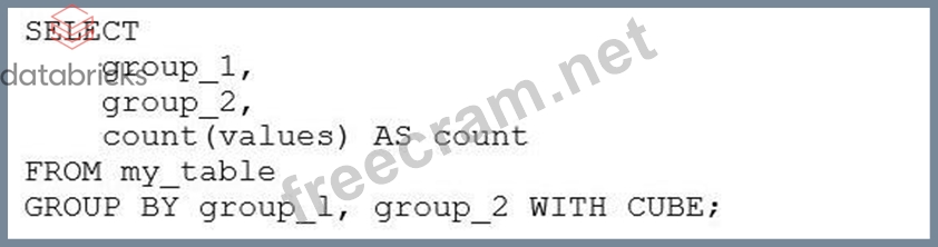 E) Option E: GROUP BY group_1, group_2 WITH CUBE - The WITH CUBE operation produces subtotals for all combinations of the selected columns and a grand total, which is more than what is shown in the result set.