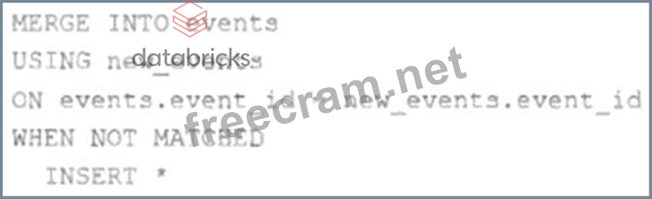 A junior data engineer on your team has implemented the following code block. The view new_events contains a batch of records with the same schema as the events Delta table. The event_id field serves as a unique key for this table. When this query is executed, what will happen with new records that have the same event_id as an existing record?