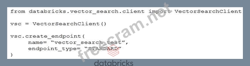 Context: The Generative AI Engineer is setting up a vector store using Databricks' VectorSearchClient. This is typically done to enable fast and efficient retrieval of vectorized data for tasks like similarity searches. Explanation of Options: * Option A: vsc.get_index(): This function would be used to retrieve an existing index, not create one, so it would not be the logical next step immediately after creating an endpoint. * Option B: vsc.create_delta_sync_index(): After setting up a vector store endpoint, creating an index is necessary to start populating and organizing the data. The create_delta_sync_index() function specifically creates an index that synchronizes with a Delta table, allowing automatic updates as the data changes. This is likely the most appropriate choice if the engineer plans to use dynamic data that is updated over time. * Option C: vsc.create_direct_access_index(): This function would create an index that directly accesses the data without synchronization. While also a valid approach, it's less likely to be the next logical step if the default setup (typically accommodating changes) is intended. * Option D: vsc.similarity_search(): This function would be used to perform searches on an existing index; however, an index needs to be created and populated with data before any search can be conducted. Given the typical workflow in setting up a vector store, the next step after creating an endpoint is to establish an index, particularly one that synchronizes with ongoing data updates, henceOption B.