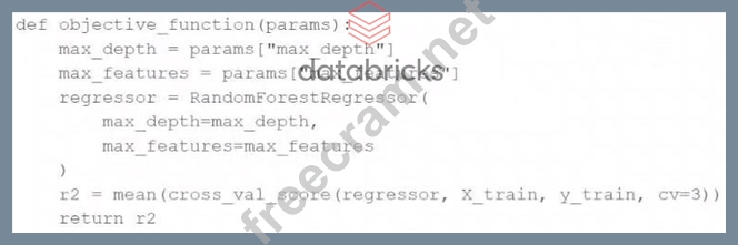 A data scientist wants to efficiently tune the hyperparameters of a scikit-learn model. They elect to use the Hyperopt library's fmin operation to facilitate this process. Unfortunately, the final model is not very accurate. The data scientist suspects that there is an issue with the objective_function being passed as an argument to fmin. They use the following code block to create the objective_function: Which of the following changes does the data scientist need to make to their objective_function in order to produce a more accurate model?