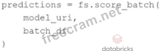 A machine learning engineer is trying to perform batch model inference. They want to get predictions using the linear regression model saved at the path model_uri for the DataFrame batch_df. batch_df has the following schema: customer_id STRING The machine learning engineer runs the following code block to perform inference on batch_df using the linear regression model at model_uri: In which situation will the machine learning engineer's code block perform the desired inference?