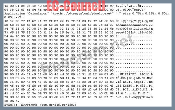 The following is an entry captured by a network IDS. You are assigned the task of analyzing this entry. You notice the value 0x90, which is the most common NOOP instruction for the Intel processor. You figure that the attacker is attempting a buffer overflow attack.