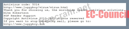 You receive an e-mail like the one shown below. When you click on the link contained in the mail, you are redirected to a website seeking you to download free Anti-Virus software.