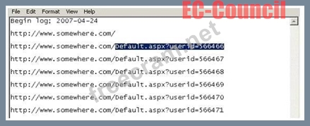 From the log, the investigator can see where the person in question went on the Internet. From the log, it appears that the user was manually typing in different user ID numbers.