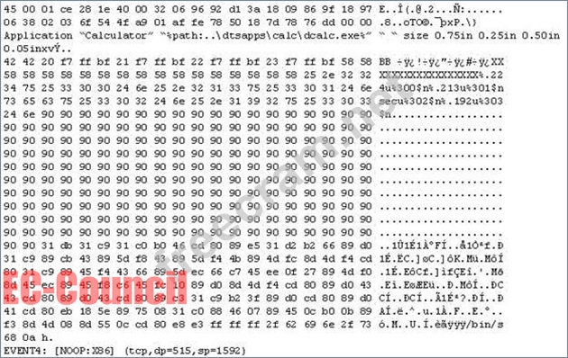 The following is an entry captured by a network IDS. You are assigned the task of analyzing this entry. You notice the value 0x90, which is the most common NOOP instruction for the Intel processor. You figure that the attacker is attempting a buffer overflow attack.