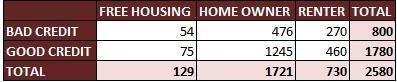 E) FREE HOUSING => BAD CREDIT