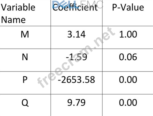 You have created a Linear Regression model to predict total sales based on variables M, N, P and Q as shown in the graphic. You originally expected all variables to have positive coefficients.