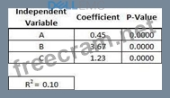 2. Only three variables-A, B, and C-have significant correlation with sales You build a linear regression model on the dependent variable of sales with the independent variables of A, B, and C.
