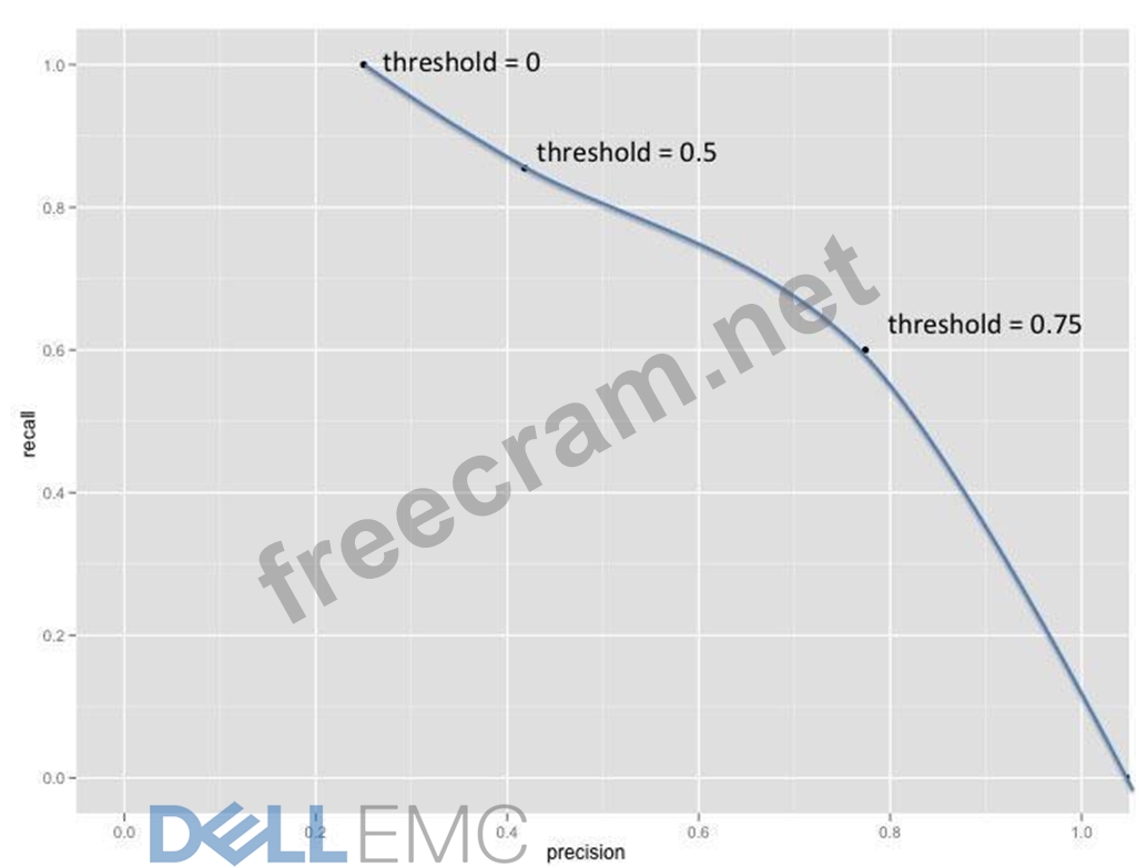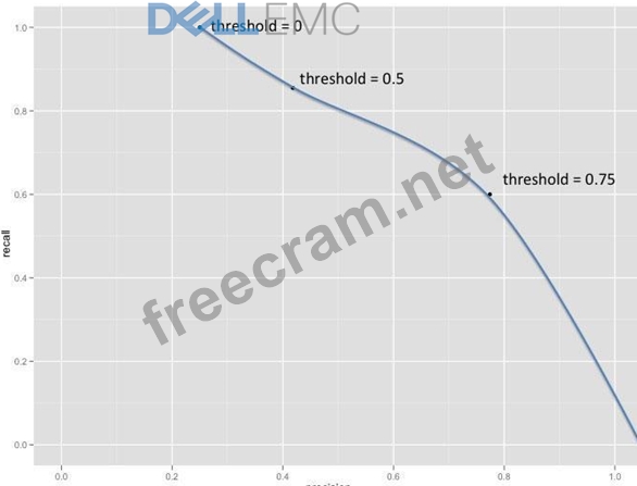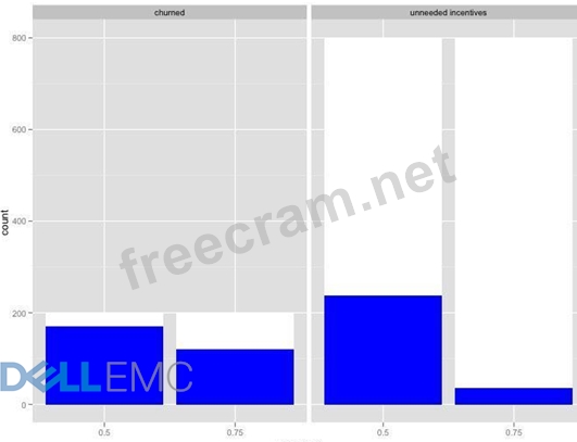 You are meeting with the Marketing team. In the meeting, you plan to state: "Raising the threshold from 0.5 to 0.75 reduces the number of unnecessary incentives that can be offered, at the cost of missing more of the customers who churned." What is the most appropriate visual to reinforce this statement?