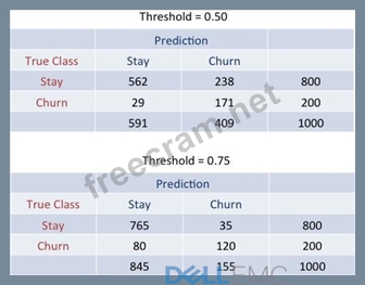 Using two different thresholds for the model provides the two confusion matrices shown in the graphic.