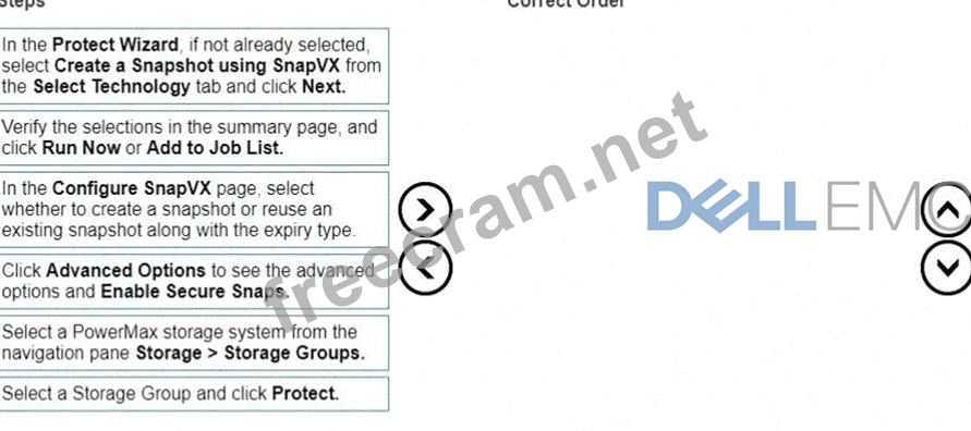 Question 48: Place the steps to create a snapshot in Unisphere for PowerM...