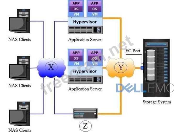 Question 106: Which type of Fibre Channel (FC) ports do the labels "X" and...