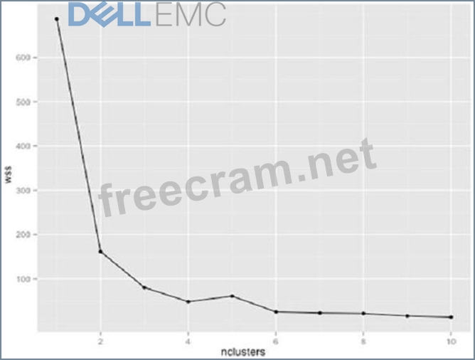 You are using k-means clustering to discover groupings within a data set. You plot within- sum-of-squares (wss) of multiple cluster sizes. Based on the exhibit, how many clusters should you use in your analysis?
