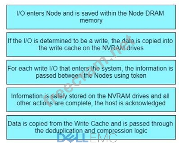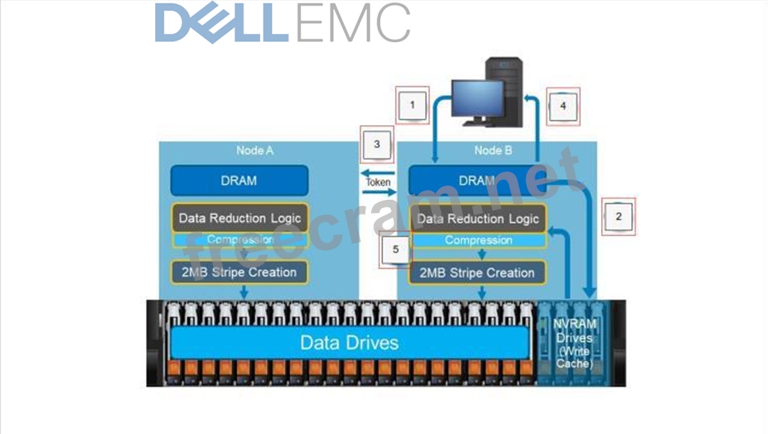between the Nodes using tokens. This operation updates the peer node that a new write has been received and that it has the newest copy of the data. A token includes information about the I/O such as what resource was updated and the address within the resource that was updated. A token also includes information Data Efficiency about the location the I/O was saved to within the write cache. If the peer Node requests that information, the Node can access the data within the NVRAM drives using its own internal channels.