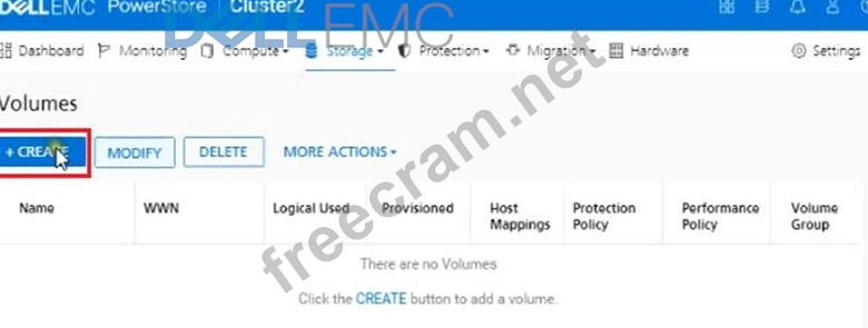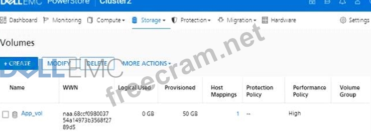 Question 17: In a PowerStore T source cluster, create a 100GB volume with...