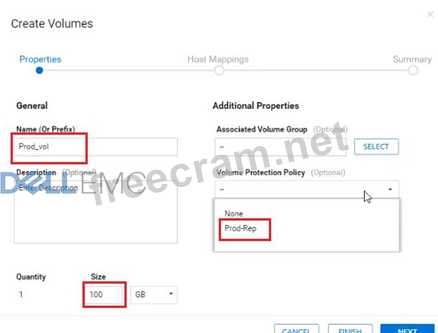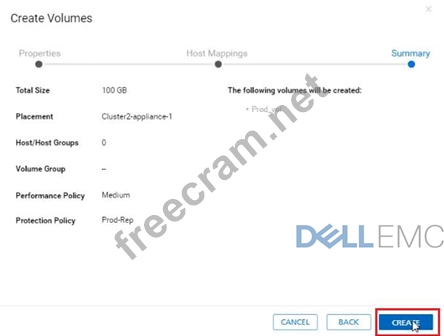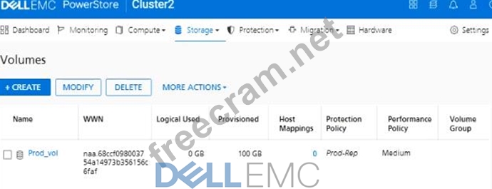 Question 17: In a PowerStore T source cluster, create a 100GB volume with...
