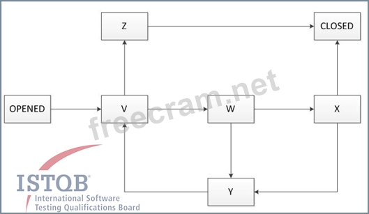 Assume you are working on a defect management process to be used by a software organization to track the current status of the defects reports for several projects. When a defect is found for investigation a defect report is created in "Opened" state that is the unique initial state. The defect report status has also a unique finale state that is the "Closed" state. The following state transition diagram describes the states of this defect management process: Where only the initial ("Opened") and final ("Closed") states are indicated while the remaining states (V, W, X, Y, Z) have yet to be named. Which of the following assignments would you expect to best complete the defect management process?