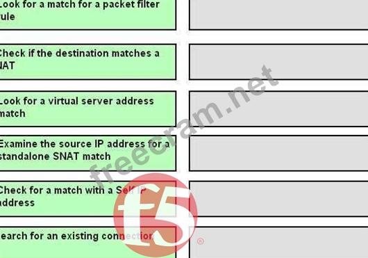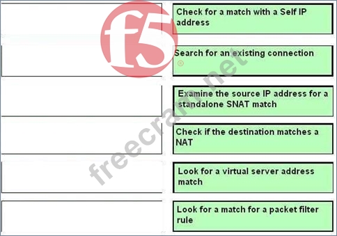 Place the following items in the order that the BIG-IP device uses when processing a packet.