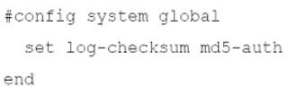The command set log-checksum md5-auth configures FortiAnalyzer to generate an MD5 hash for each log file, along with an authentication code. This ensures that the integrity of the logs can be verified, confirming that the logs have not been tampered with.