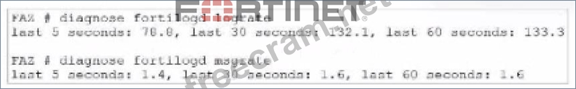 * diagnose fortilogd lograte: This command shows the rate at which logs are being processed by the FortiAnalyzer in terms of log entries per second.