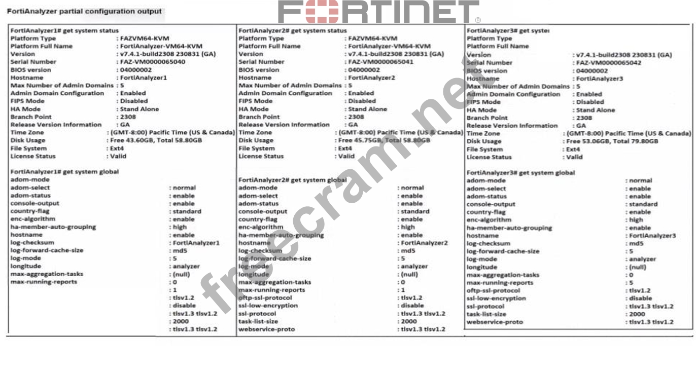 Based on the above analysis, all devices (FortiAnalyzer1, FortiAnalyzer2, and FortiAnalyzer3) meet the requirements to be part of a FortiAnalyzer Fabric.