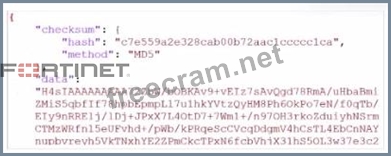 In the exhibit, the data structure shows a checksum field and a data field with a long, seemingly encoded string. This format is indicative of a file that has been compressed or encoded for storage and transfer. Export Data Type: The data field is likely a base64-encoded string, which is commonly used to represent binary data in text format. Base64 encoding is often applied to data that has been compressed (zipped) for easier handling and transfer. The checksum field, with an MD5 hash, provides a way to verify the integrity of the data after decompression. Option Analysis: A . The export data type is zipped: Correct. The compressed and encoded format of the data suggests that the export is in a zipped format, allowing for efficient storage and transfer. B . The playbook is misconfigured: There is no indication of misconfiguration in this exhibit. The presence of the checksum and data fields aligns with standard export practices. C . The option to include the connector was not selected: There is no evidence in the output to conclude that connectors are missing. Connectors are typically listed separately and would not directly affect the checksum and encoded data structure. D . Your colleague put a password on the export: There's no indication of password protection in the exhibit. Password protection would likely alter the data structure, and there would be some mention of encryption. Conclusion: Correct Answe r : A. The export data type is zipped. This answer is consistent with the typical use of base64 encoding for compressed (zipped) data exports in FortiAnalyzer. Reference: FortiAnalyzer 7.4.1 documentation on exporting playbooks and data compression methods.