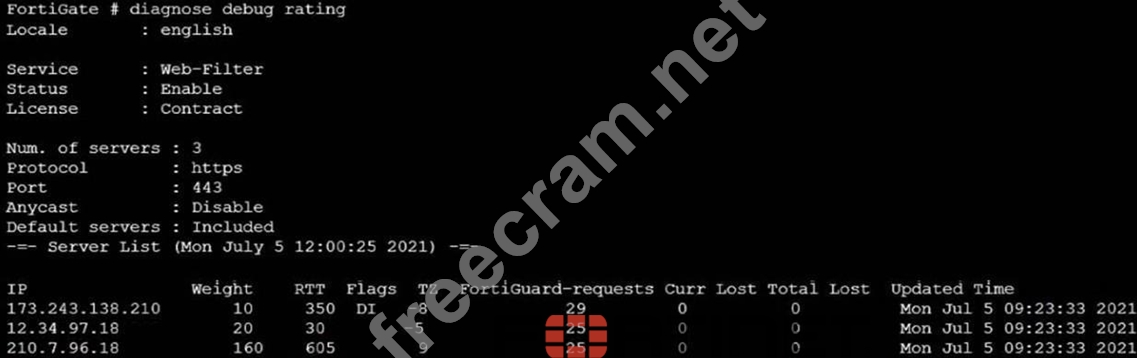 Question 64: Refer to the FortiGuard connection debug output. (Exhibit) B...