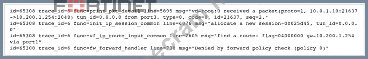 Question 42: Refer to the exhibit. (Exhibit) Why did FortiGate drop the p...