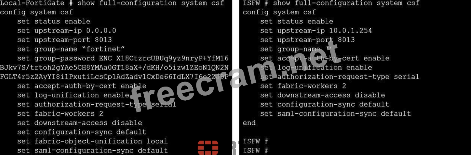 Question 95: Which downstream FortiGate VDOM is used to join the Security...
