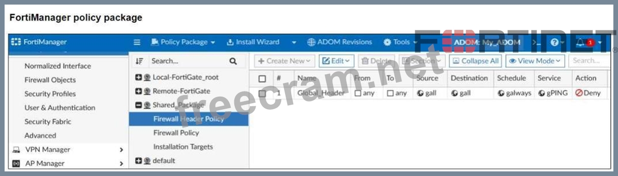Refer to the exhibit. A service provider administrator has assigned a global policy package to a managed customer ADOM named My_ADOM, which has four policy packages. The customer administrator has access only to My_ADOM. How can the customer or service provider administrators remove the global header policy from the policy package named Shared_Package?