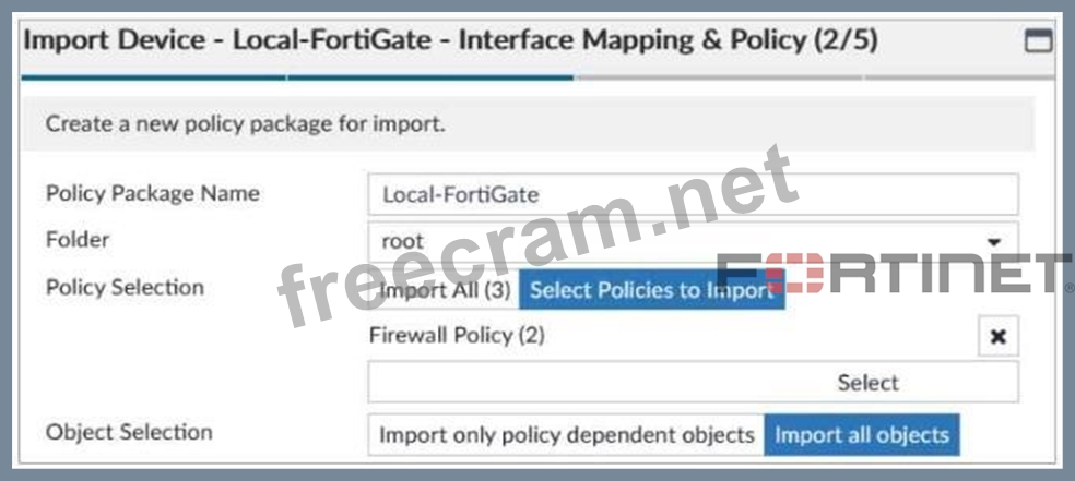 Refer to the exhibit. An administrator is importing a new device into FortiManager and has selected the options shown in the exhibit. What will happen if the administrator makes changes and then installs the modified policy package on this managed FortiGate?