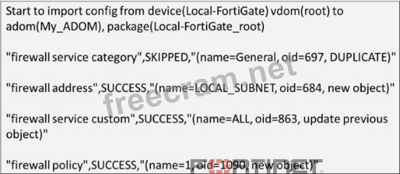 Refer to the exhibit. Given the import report shown in the exhibit, how did FortiManager handle the service category named General?