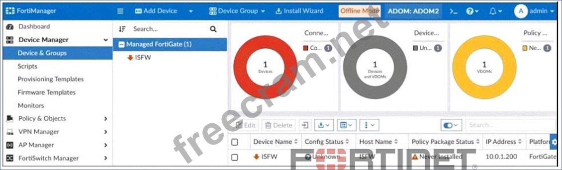 Question 13: Refer to the exhibit. (Exhibit) How will FortiManager try to...