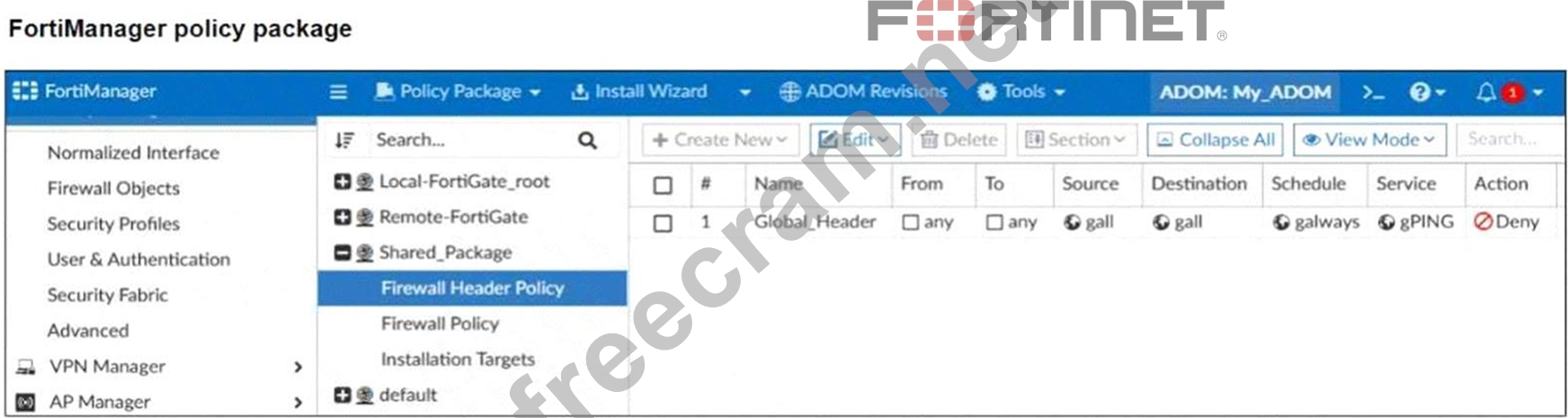 Refer to the exhibit. A service provider administrator has assigned a global policy package to a managed customer ADOM namedMy_ADOM, which has four policy packages. The customer administrator has access only toMy_ADOM. How can the customer or service provider administrators remove the global header policy from the policy package namedShared_Package?