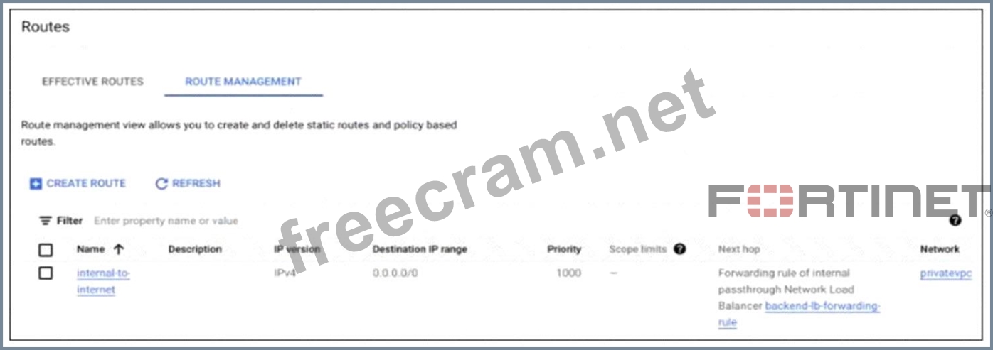 Refer to the exhibit. Which three conclusions can you draw from the Google Cloud custom route? (Choose three.)
