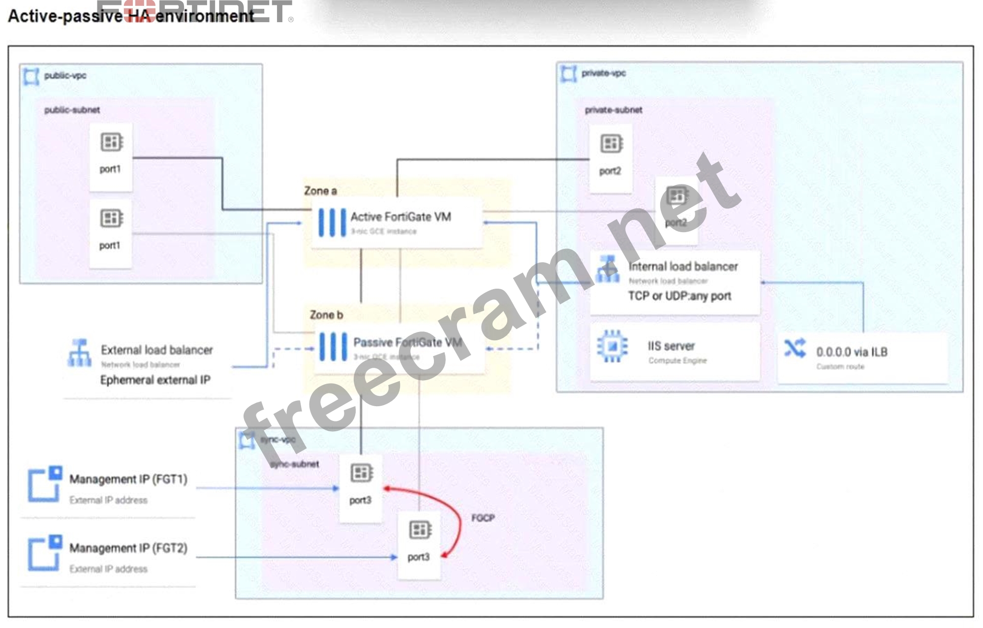 Refer to the exhibit. Which three things happen during a failover in which the passive FortiGate VM becomes the master cluster member in an active-passive high-availability (HA) environment? (Choose three.)
