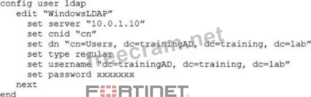 Question 42: A FortiGate device has the following LDAP configuration: (Ex...