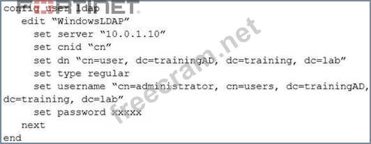 Question 42: A FortiGate device has the following LDAP configuration: (Ex...