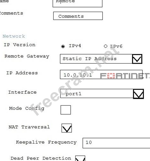 Question 30: An administrator added the following Ipsec VPN to a FortiGat...