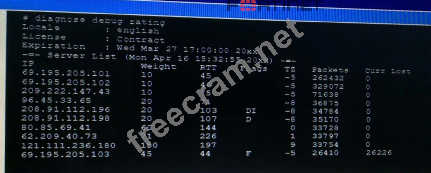 Question 9: Examine the output of the 'diagnose debug rating' command sh...