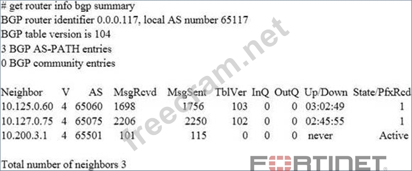 Examine the output of the 'get router info bgp summary' command shown in the exhibit; then answer the question below.