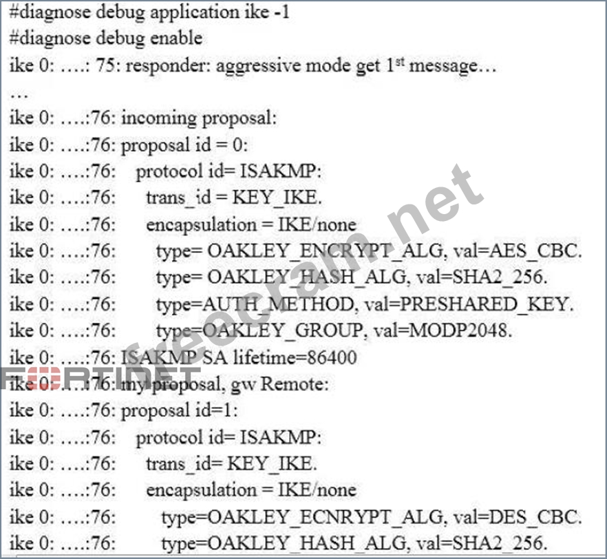 Examine the partial output from the IKE real time debug shown in the exhibit; then answer the question below.