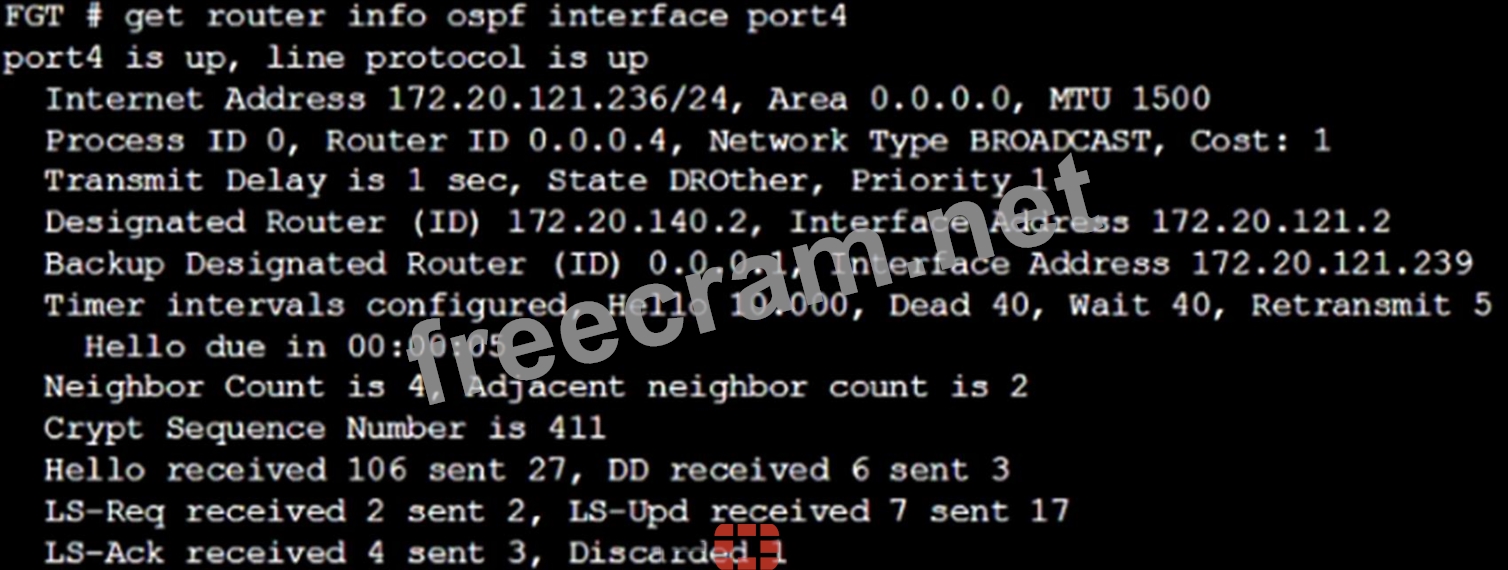 Question 24: Four FortiGate devices configured for OSPF connected to the ...