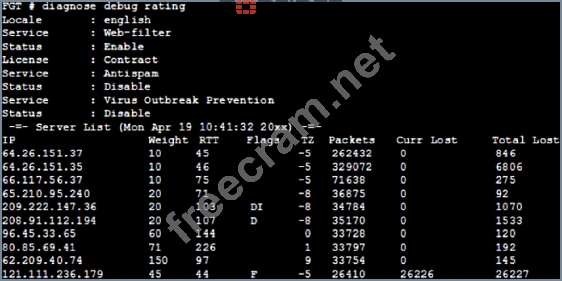 Question 9: Examine the output of the 'diagnose debug rating' command sh...